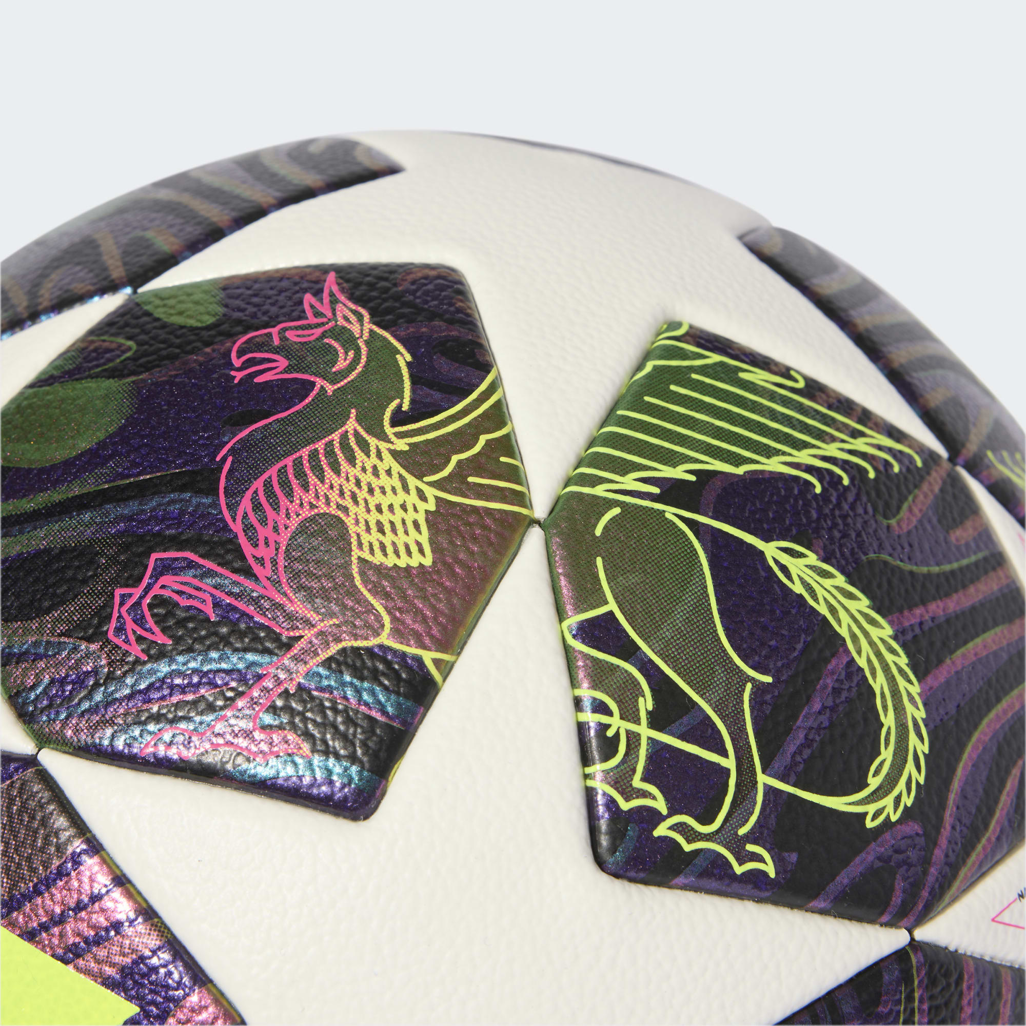The UEFA Champions League Competition Ball is crafted for professional play, offering precision and stability on the pitch. With a textured surface for improved flight stability and a seamless thermal-bonded construction, this ball ensures a more predictable trajectory and better touch. Achieving the highest FIFA rating, it meets rigorous standards for weight, water uptake, shape, and size retention.